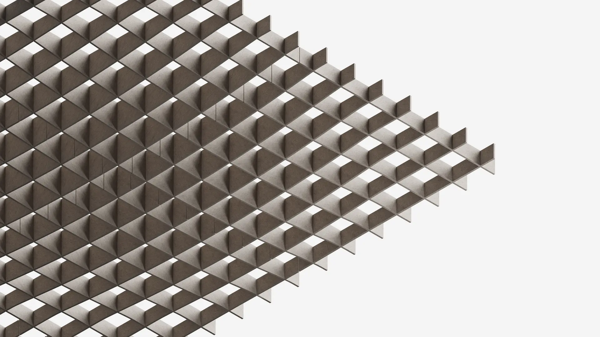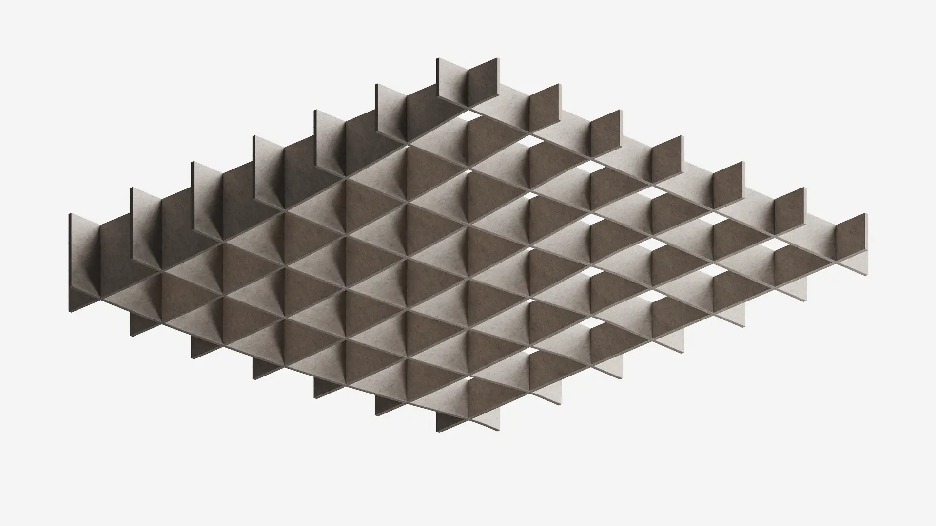 HASH TAG (#)형태의 솔리드한 PET소재의 격자 구조는 공간의 울림을 효과적으로 억제하고, 천장을 입체감 있게 만들어줍니다. 별도의 하드웨어를 사용해 천장에 매달거나 고정할 수 있습니다. 연결 하드웨어를 사용하여 공간의 면적과 형태에 구애 받지 않고 공간의 어쿠스틱 환경을 구축할 수 있습니다.