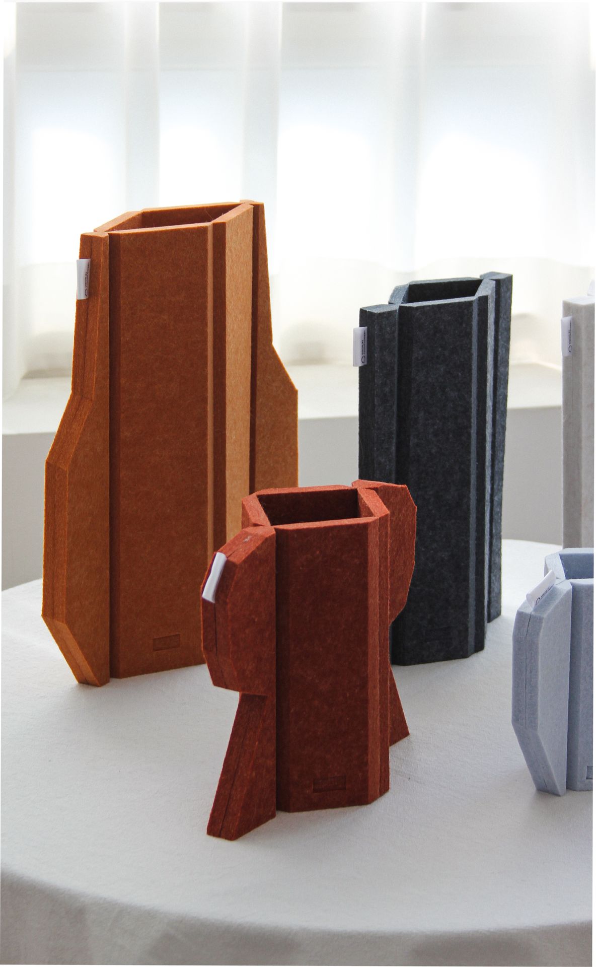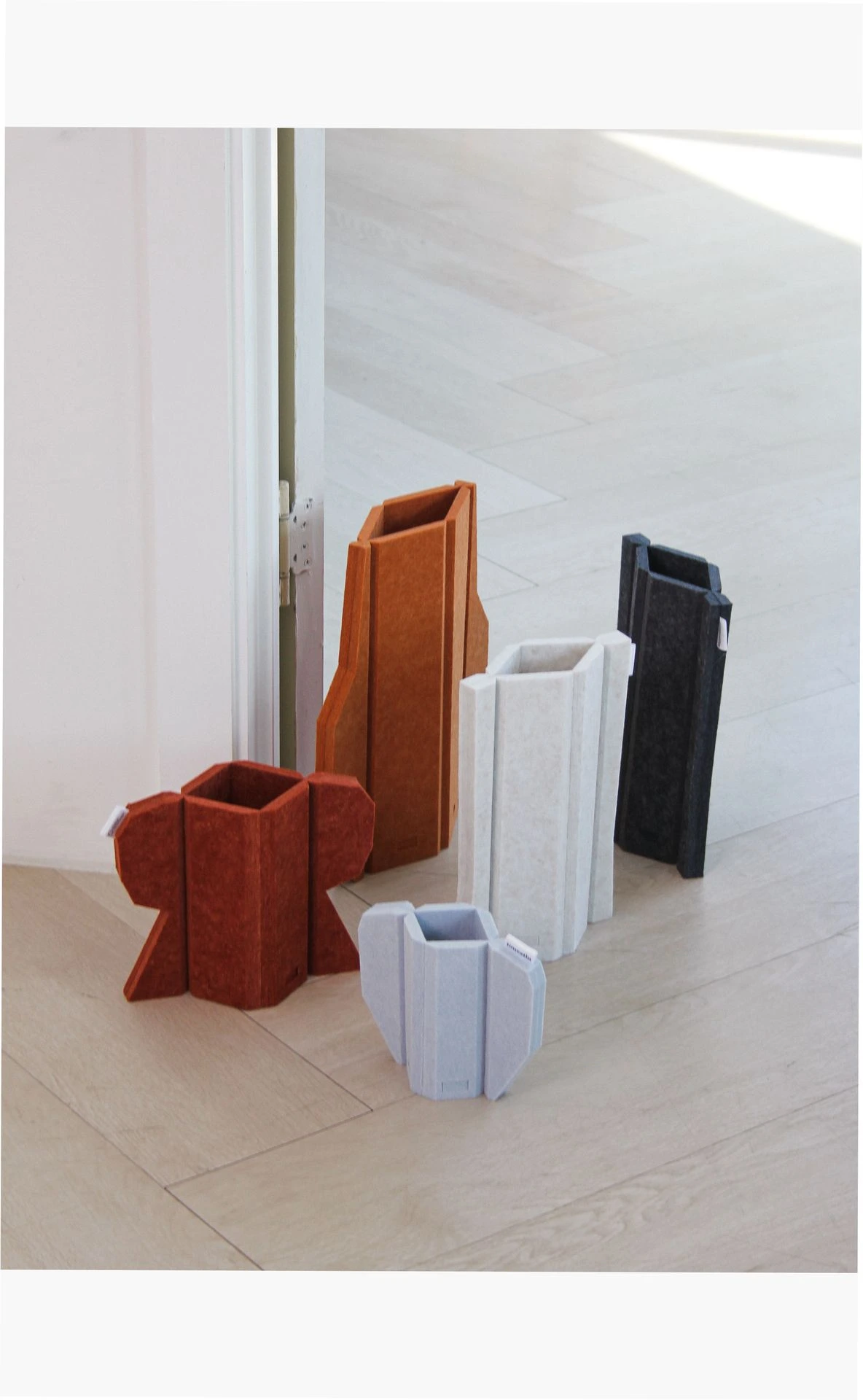 부드럽고 가벼운 PET 소재를 V-컷 가공으로 형상화한 화병 오브제입니다.